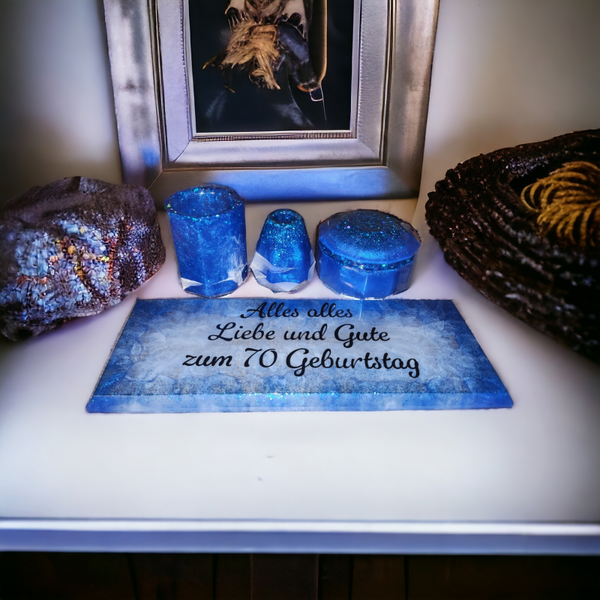 Bestehend aus Tablett,Zahnputzbecher, kleine Vase und einer Schale in Petrol/Weiß mit Glitzer Personalisierung möglich