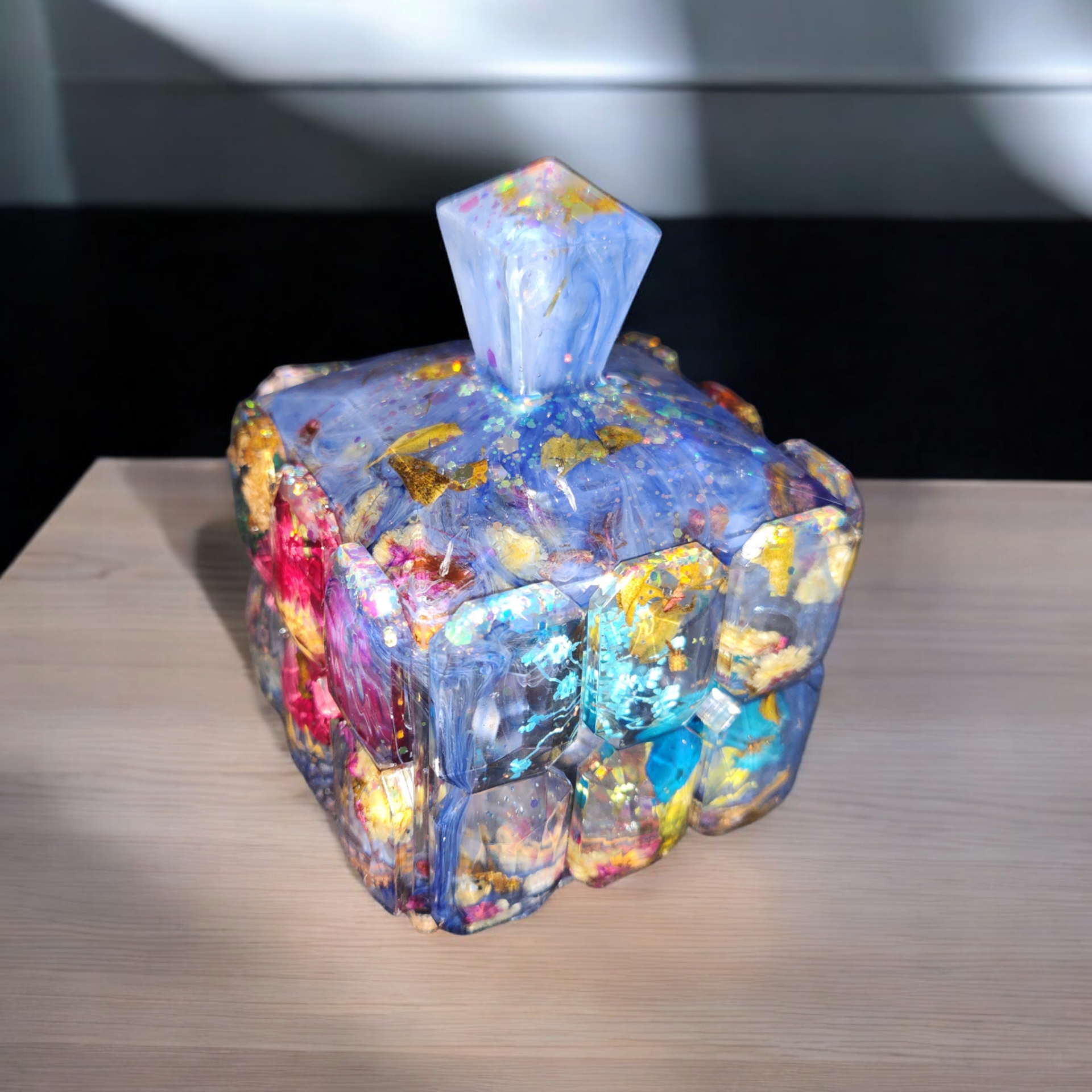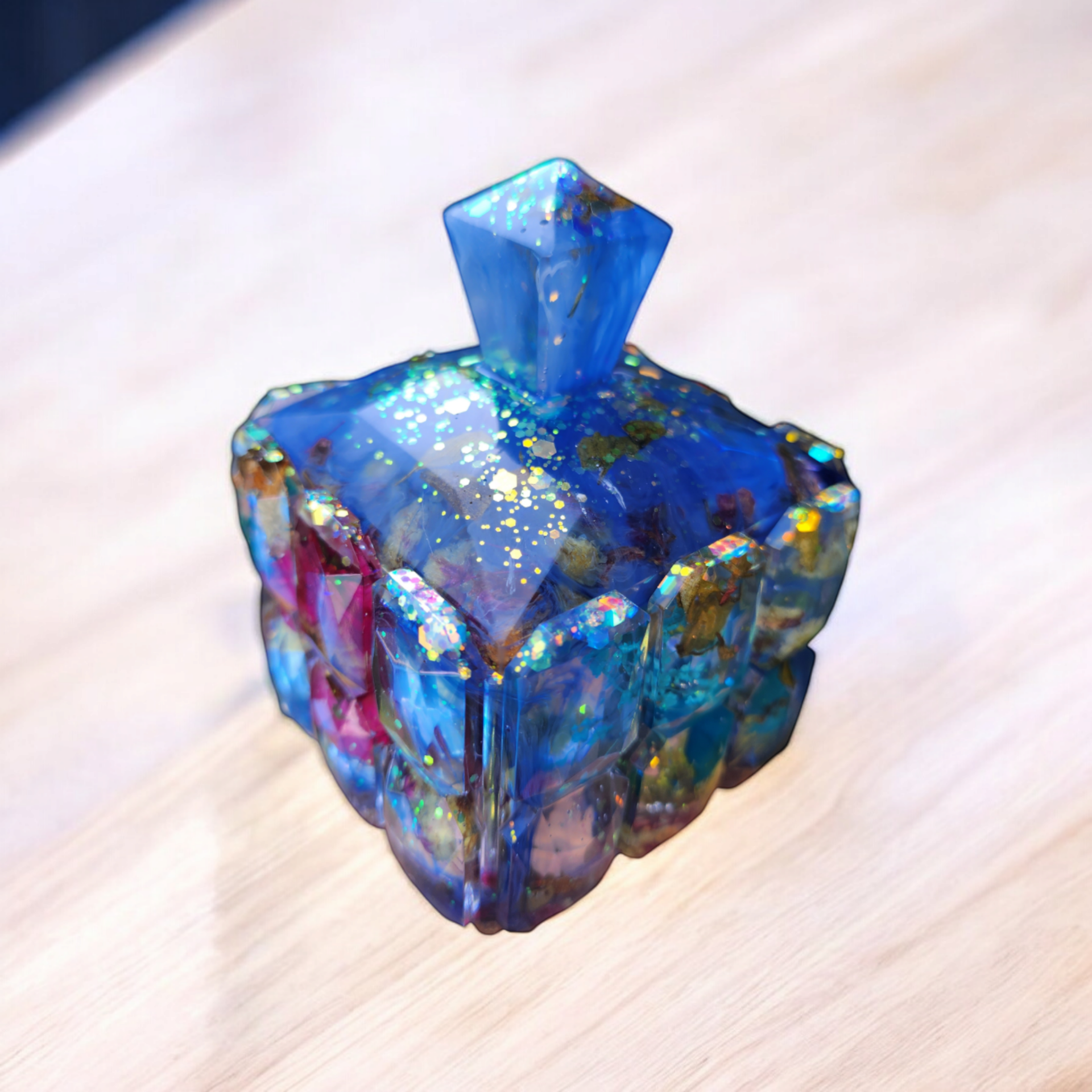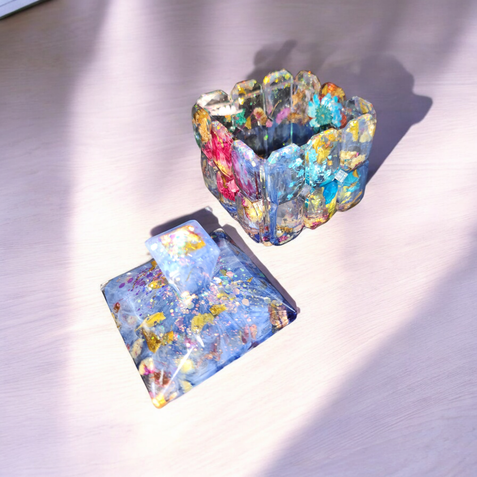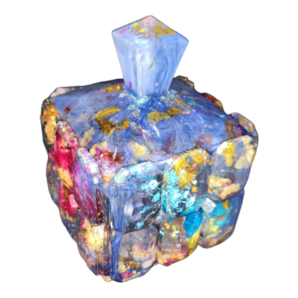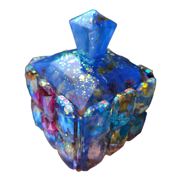 Mit echtwn Blumen und Blau/Glitzer Schimme
