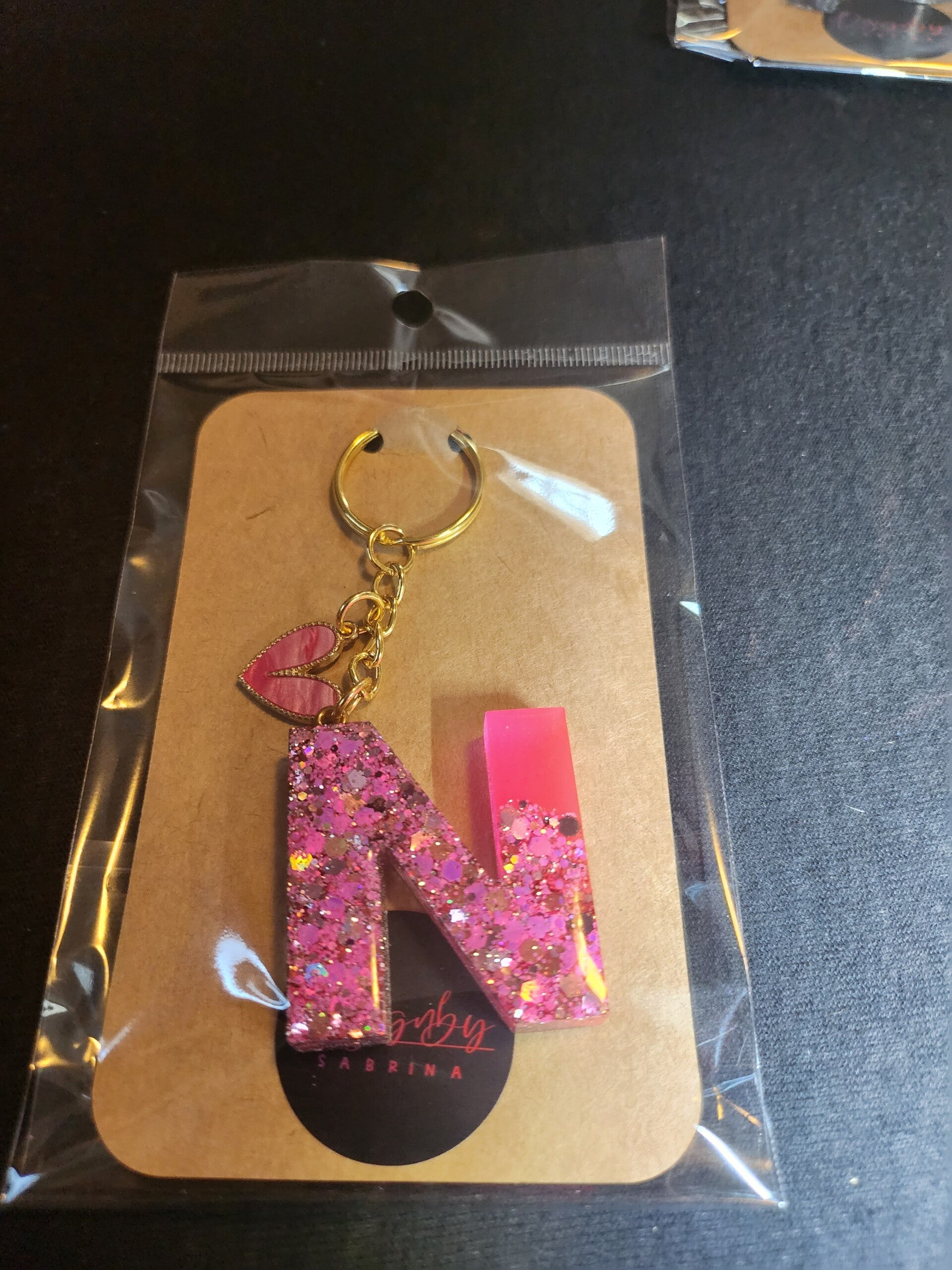 Buchstabe N in Pink /Glitzer mit Herz Charm