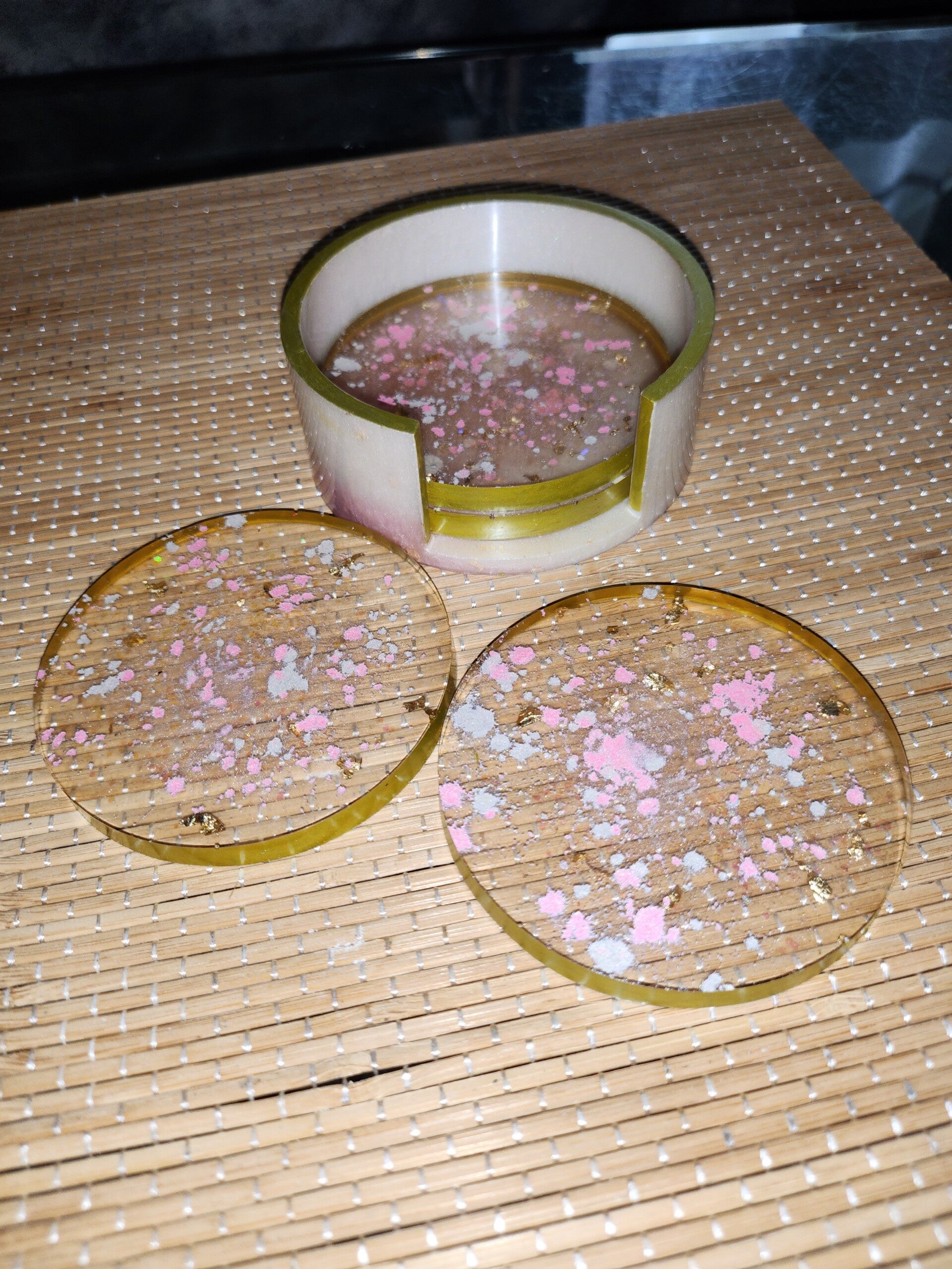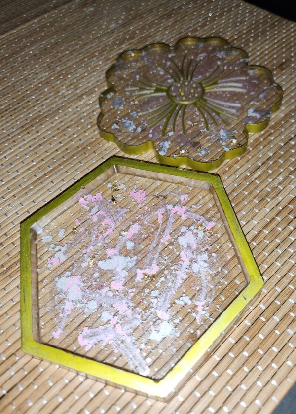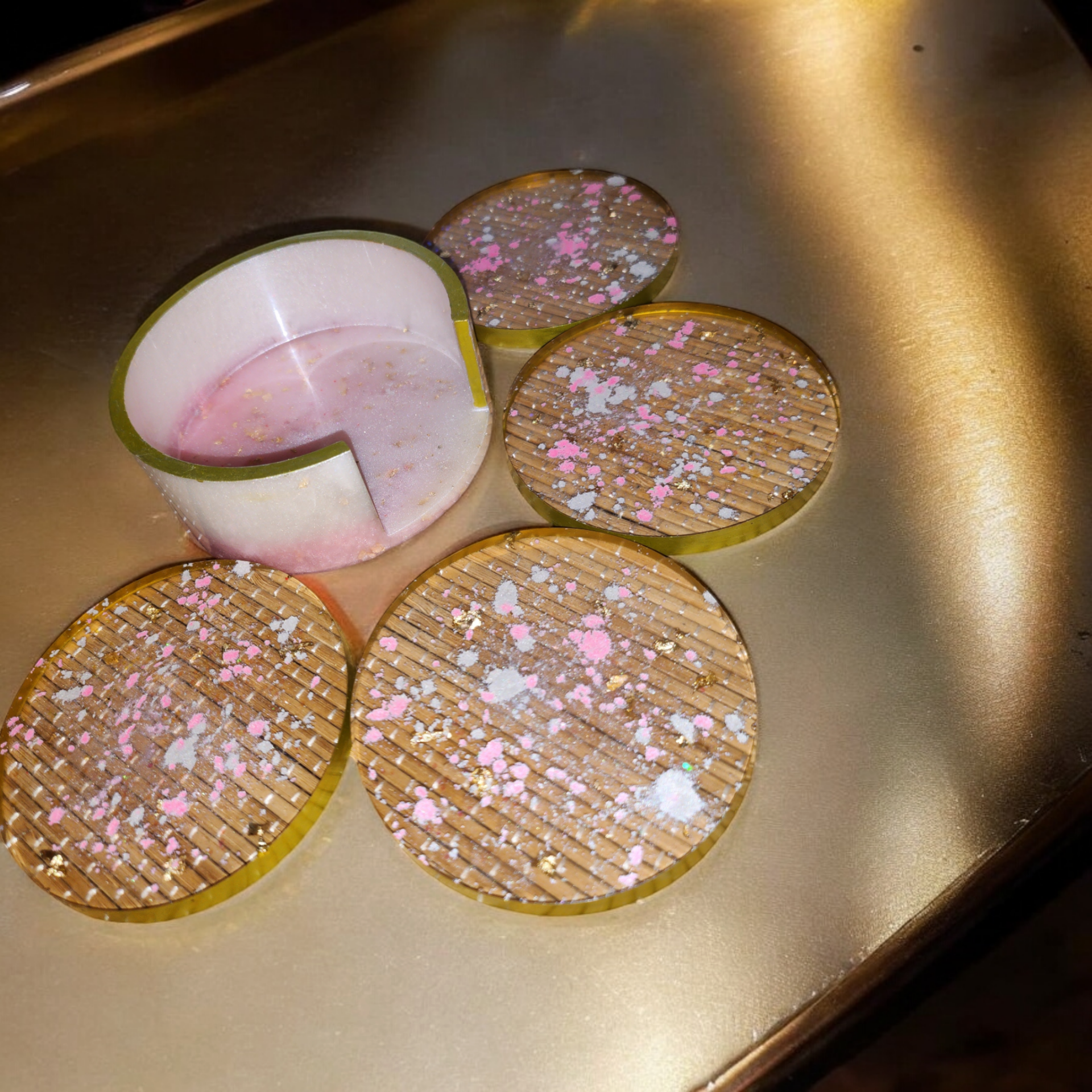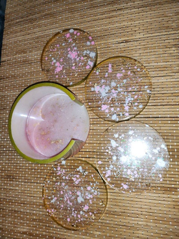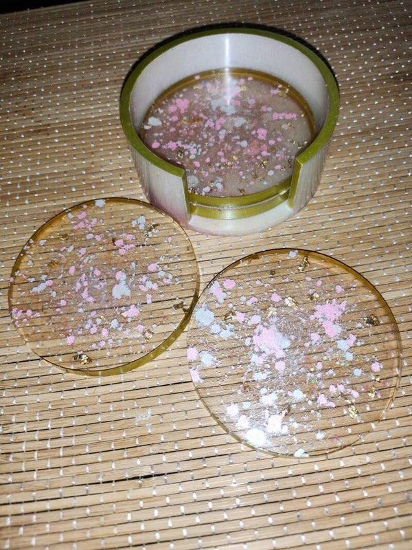 In Cremeweiß mit Rosa/Weißen Effekt und Goldrand bestehend aus: