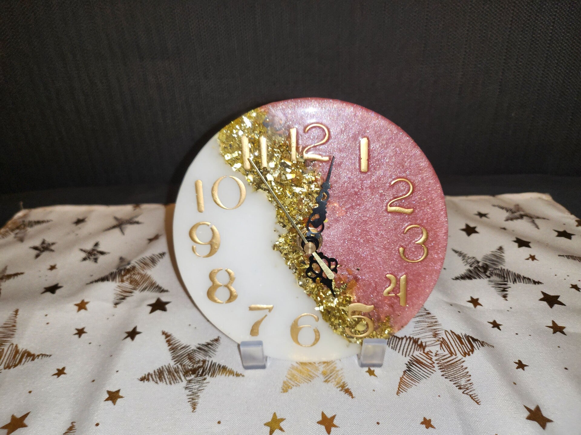 In Rosa/Weiß mit Goldfluss, Schwarze Ziffern ,Goldene Zahlen zum Aufhängen oder hinstellen inkl. Batterie