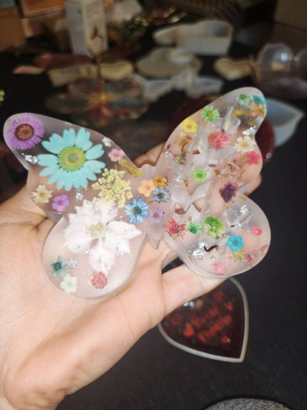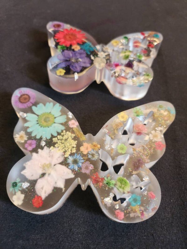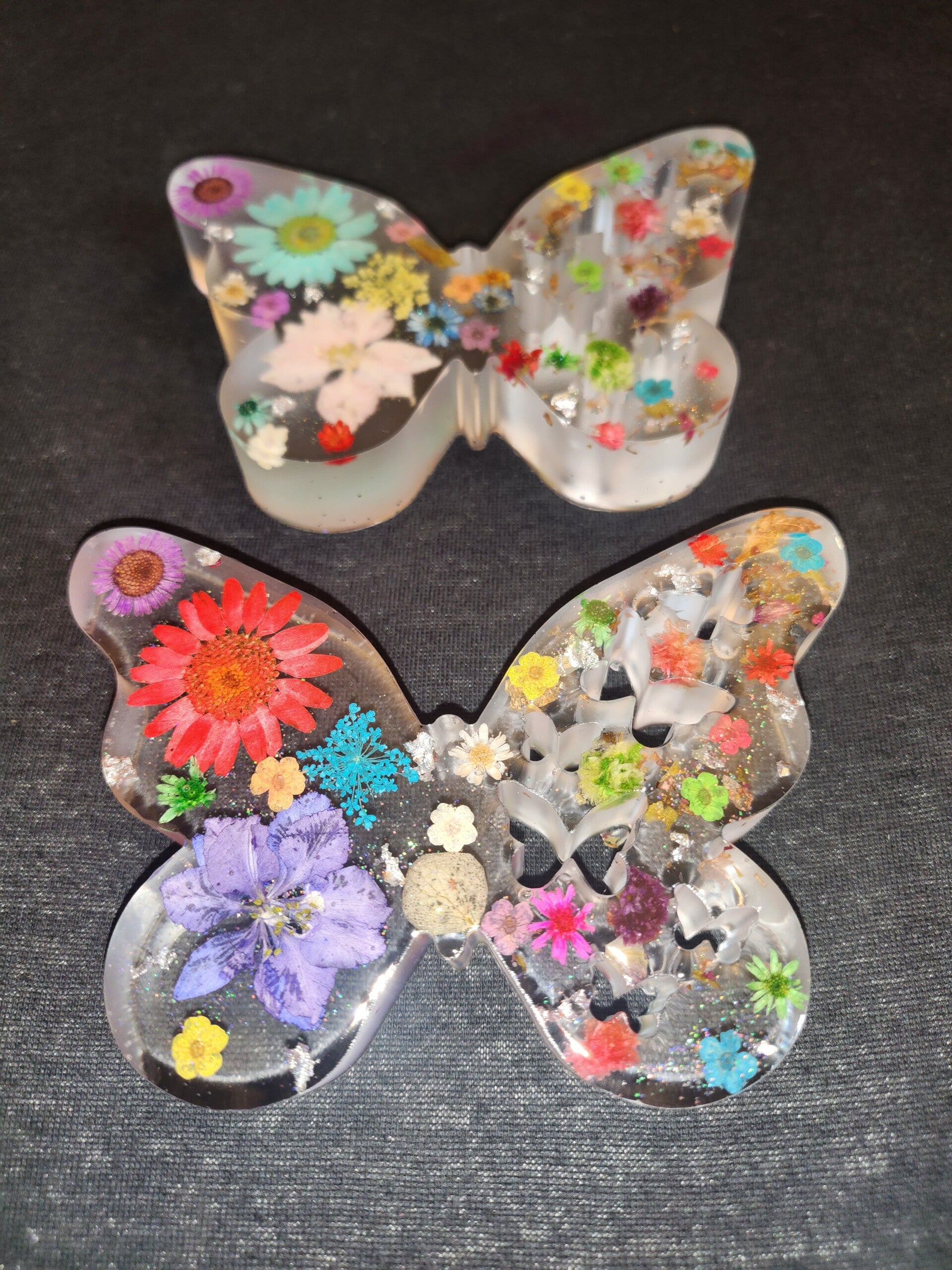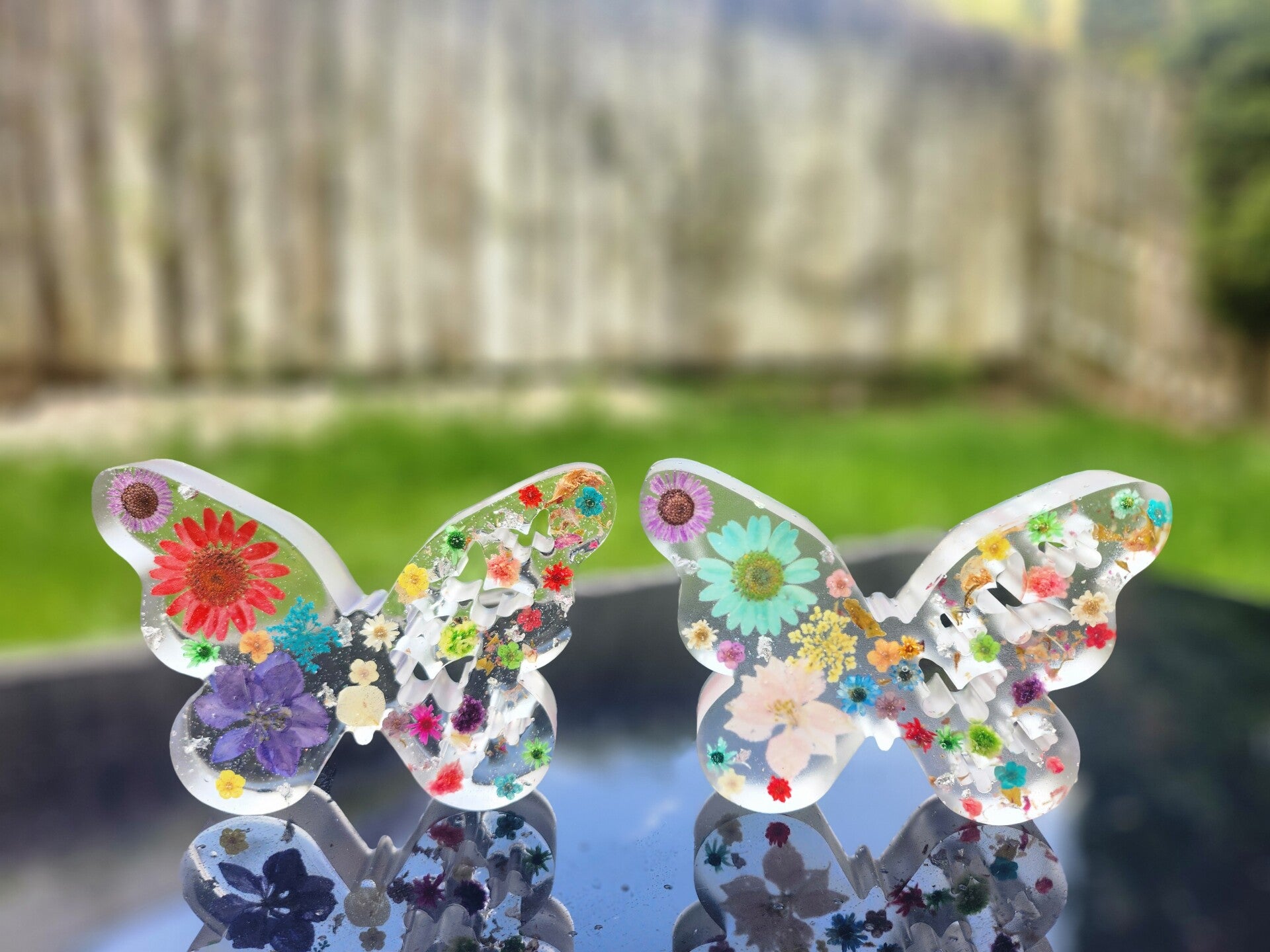 Schmetterling mit echten Blumen in Matt oder Glänzend pro Stk.