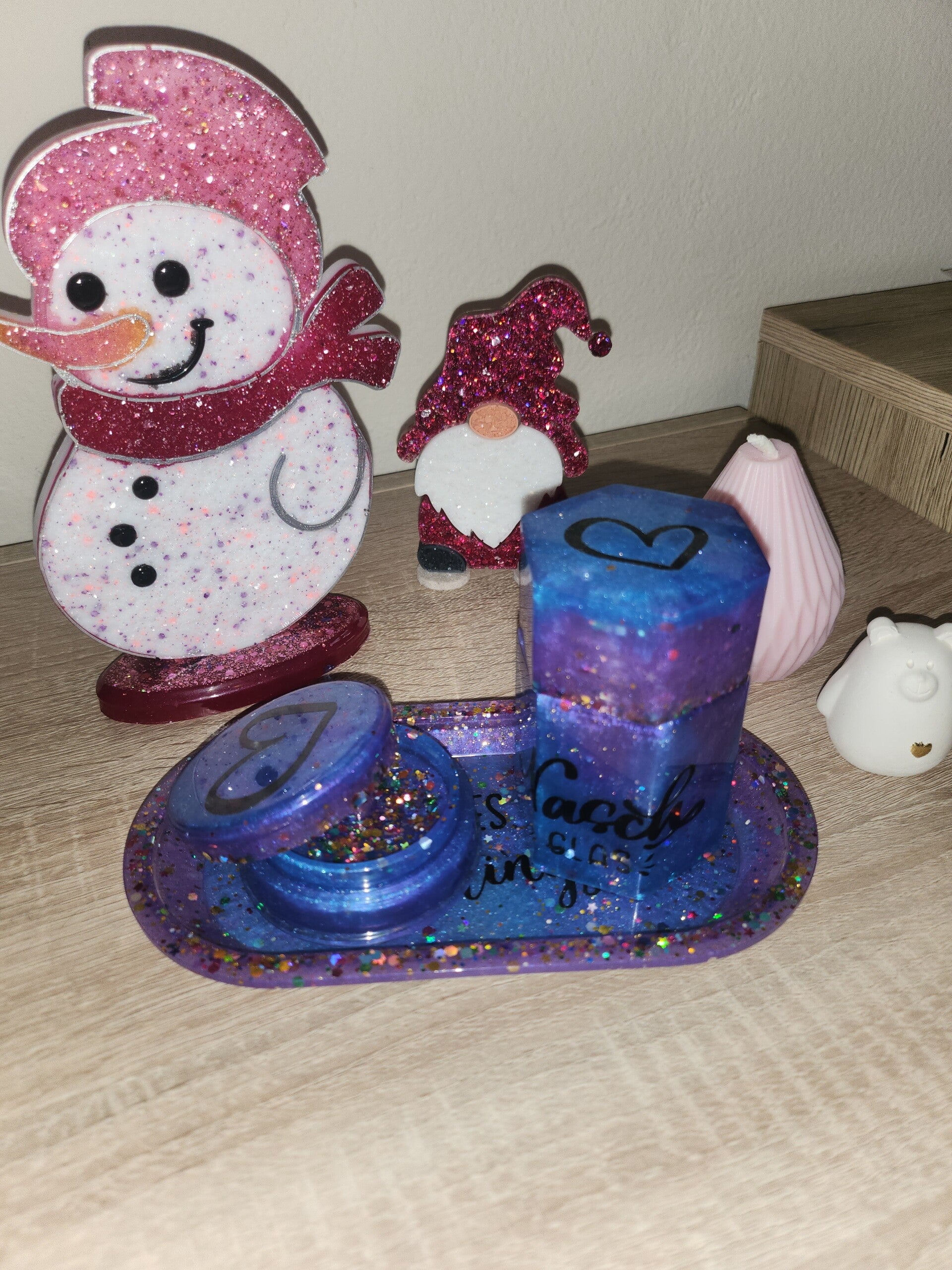 In Blau/Viiolett bestend aus Dose,Mühle Tablett mit Schriftzug