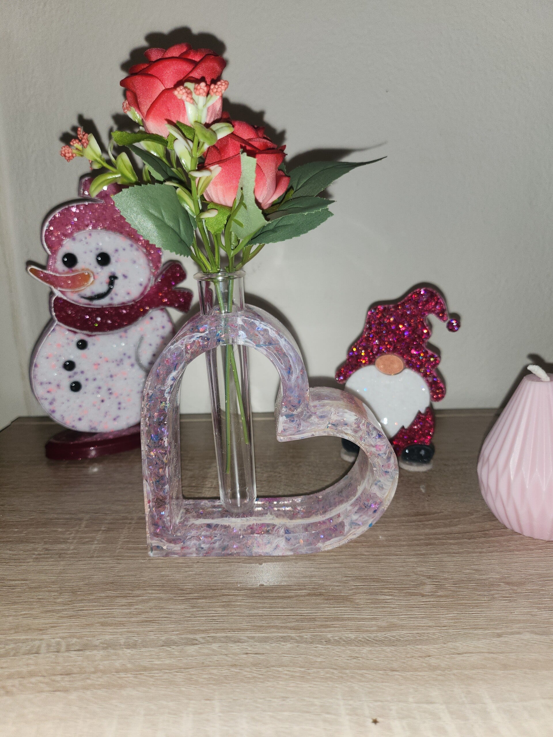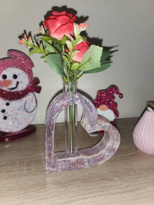 In Flieder durchsichtig Glitzer inkl Vase und Kunstrosen